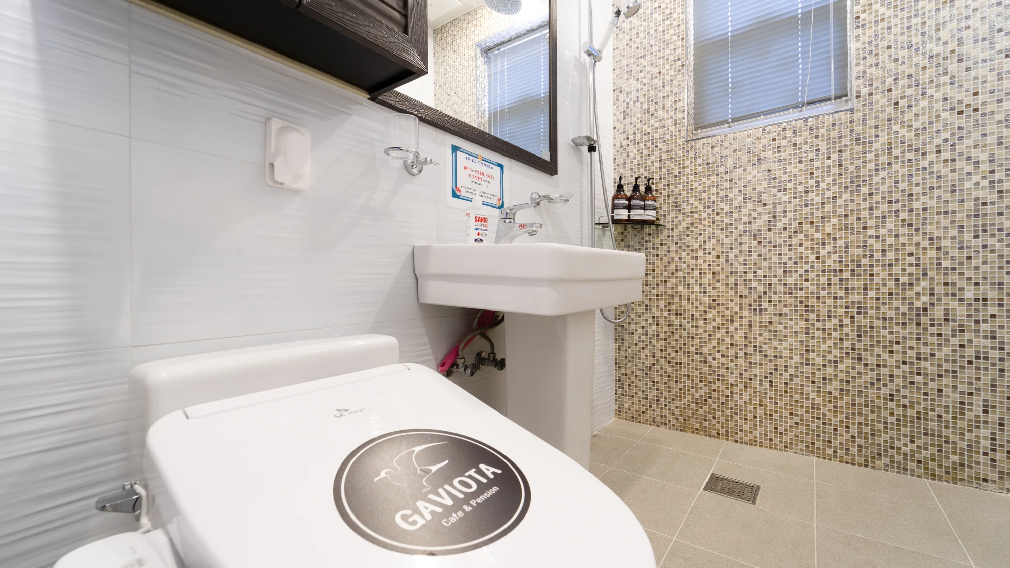 - 집기품목 : TV, 금연, 취사시설/도구, 전자레인지, 인덕션, 와이파이, 정수기, 냉장고, 에어컨, 커피포트, 전기밥솥, 드라이기, 샴푸, 린스, 바디워시, 세면도구, 타월, 비데, 무선인터넷, 상비약, 소화기, 침대방, 화재 감지기, 비누, 슬리퍼, 토스트기, 치약, 욕실용품, 바다전망